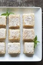 - Cover the top with the remaining coconut, lightly pressing it into the top and sides of the dough.